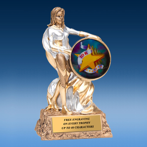 This nice 6″ tall resin, accepts a 2″ graphic decal of your sport/activity.