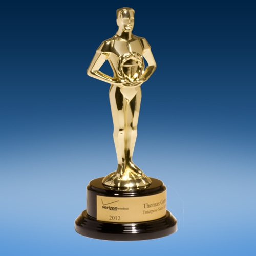 • Heavy weighted cast metal figurine hand-polished with gold tone finish on black piano-finish base