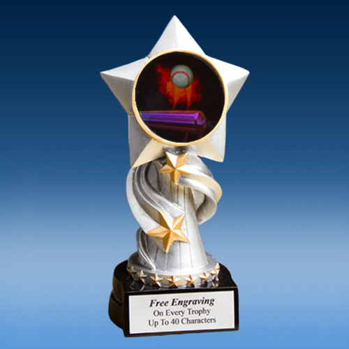 This nice 6″ tall resin, accepts a 2″ graphic decal of your sport/activity.