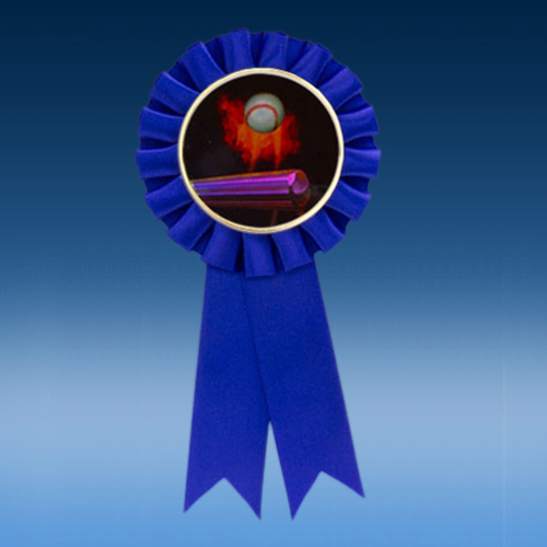 This nice 6.25” long ribbon accepts a 2” graphic decal of your sport/activity.  It is available in three colors.  Red, Blue and White.