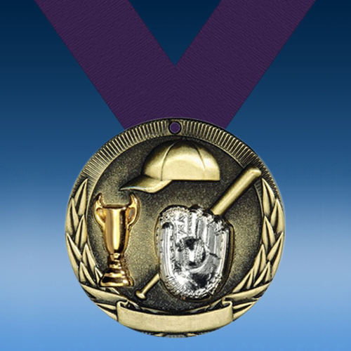 Celebrate victorious accomplishments in baseball with our impressive Baseball Two-Toned Series Medals! This two-toned medal award features 3-D baseball imagery and a victory cup. Available in gold, silver, or bronze finishes. Personalize the reverse side of this award with error-free engraving. Display this medal on the ribbon color of your choice for beautiful presentation. This award is perfect for recognizing outstanding achievements in baseball!