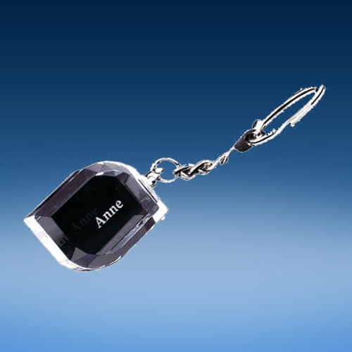 The Crystal Angle Facet Key Chain measures 1 ½” x 1 3/16” x 5/8”. Enter your free engraving on the next page.