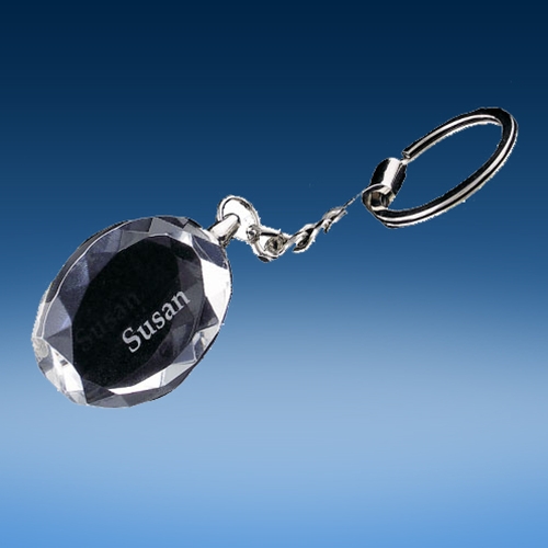 The Crystal Oval Facet Key Chain measures 1 7/16” x 1 ¼” x 9/16”. Enter your free engraving on the next page.