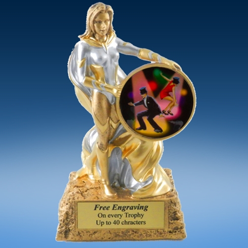 This nice 6″ tall resin, accepts a 2″ graphic decal of your sport/activity.