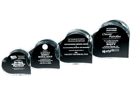 Our Heart Acrylic Award is ideal for any special event or romantic celebration. These acrylics are offered in clear and jade. When lasered, the effect is a beautiful frost showing through the acrylic. Your inscription or artwork will look astonishing on this award. These elegant awards are offered in four different sizes.