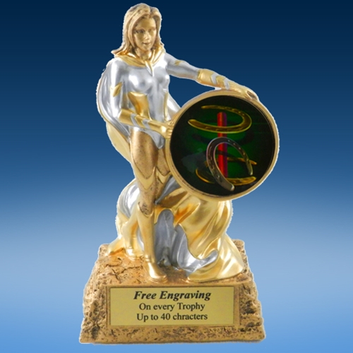 This nice 6″ tall resin, accepts a 2″ graphic decal of your sport/activity.