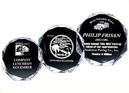 The Octagon Acrylic Award with itshighly polished, smooth angles and facets make it ideal for any special eventor professional dedication. These acrylics are self-standing and are finished inclear and jade. When lasered, the effect is a beautiful frost showing throughthe acrylic. Your inscription or artwork will look astonishing on this award.These elegant awards are offered in three different sizes.