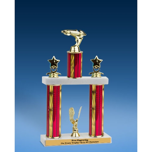Racing sport figure and base measure 17” due to figurine height. Column height same as standard 19″ trophies.