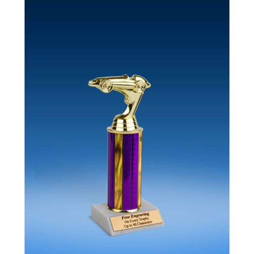 Racing sport figure and base measure 8” due to figurine height. Column height same as standard 10″ trophies.