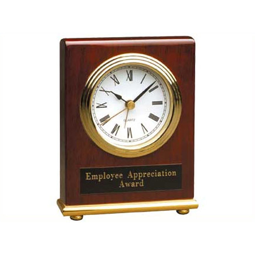 The Rectangle Desk Clock measure 4” x 5”. It has a polished Piano Finish and includes AA batteries. Include your custom engraving on the next page.