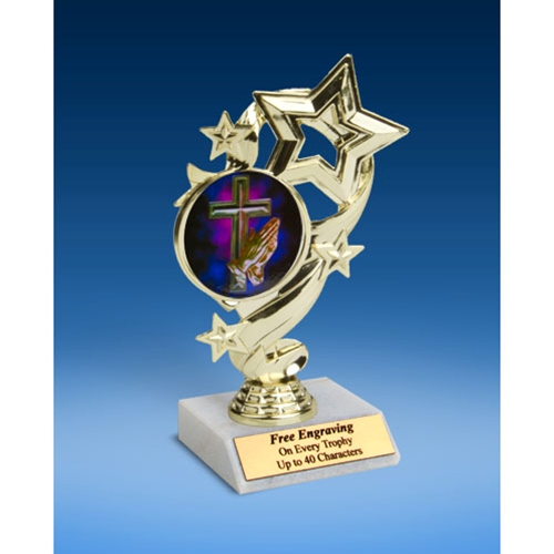 Categories: 6" Star Ribbon Trophies, Religious, Trophies, Video - Mylar Trophies