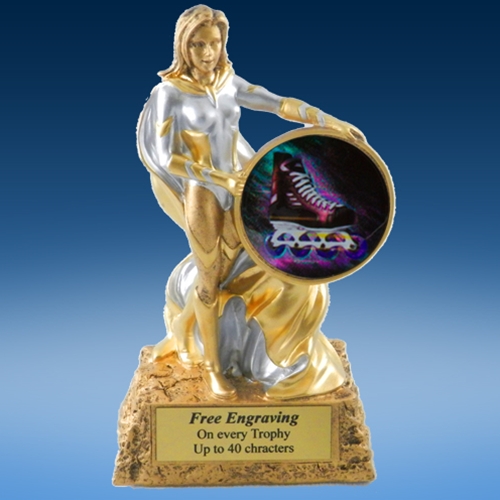This nice 6″ tall resin, accepts a 2″ graphic decal of your sport/activity.