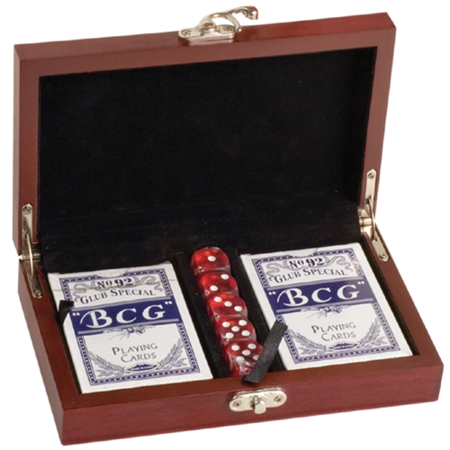Our Rosewood Finish Card & Dice Sett is compact in size for easy portability. The rosewood finish case is perfect to add the laser engraving of your choice, free of charge*.