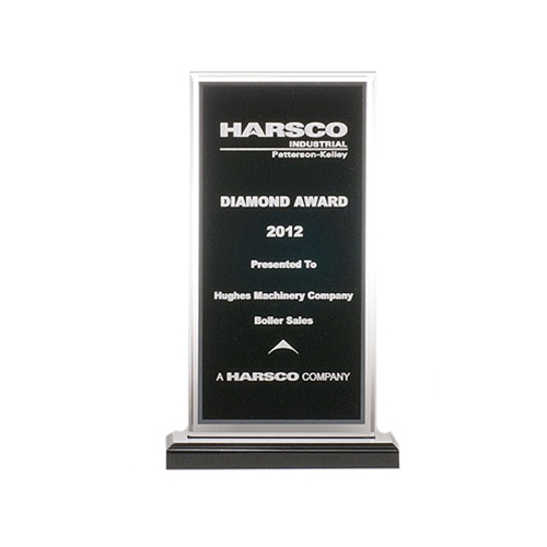 Black pattern acrylic award with silver mirror border.