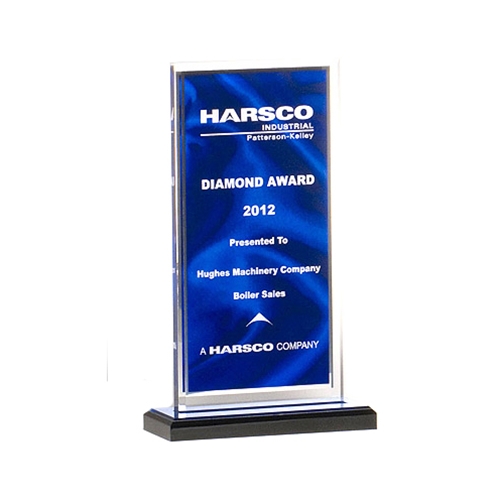 Dark blue draped satin pattern acrylic award with silver mirror border.