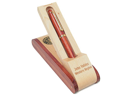 The Single Folding Pen Box is made from solid maple with rosewood trim and measures 2 ¼” x 6 ¾” x 1”. Include your FREE custom engraving on the next page.