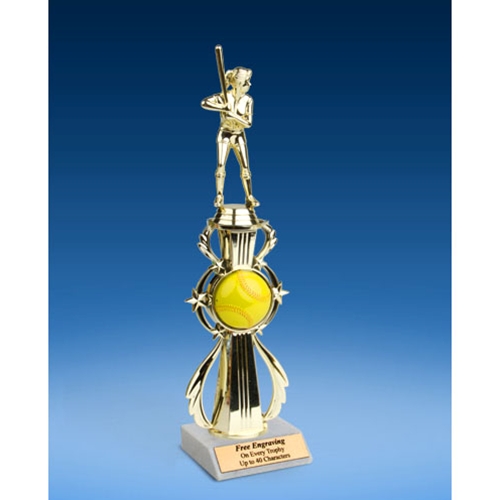 - Softball sport riser trophy and base measure 13” tall