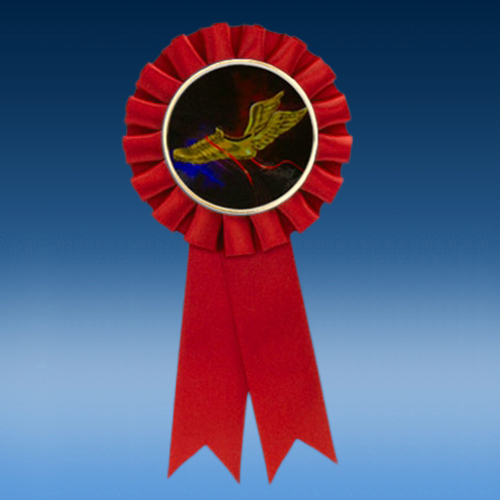 This nice 6.25” long ribbon accepts a 2” graphic decal of your sport/activity.  It is available in three colors.  Red, Blue and White.