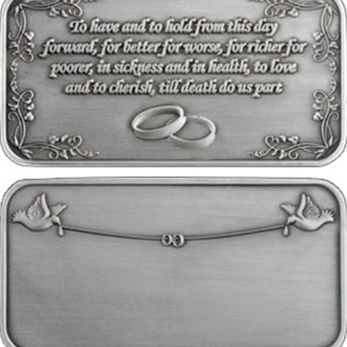 Coin reads: “To have and to hold from this day forward, for better or for worse, for richer for poorer, in sickness and in health, to love and to cherish, till death do us part”