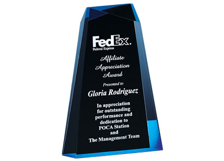Our acrylic awards are clear or jade, the black colored appearance you see is to help show the white engraved logo/lettering.