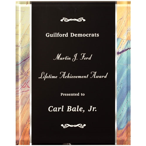 Recognize special accomplishments with this Wind Acrylic Plaque! This award features vertical borders with a mix of warm and cool tones that are reminiscent of a seaside shore. These borders flank a black center, which can be personalized with error-free engraving. Available in 2 different sizes and comes complete with a self-adhesive back hanger. A perfect award for any office or corporate space!